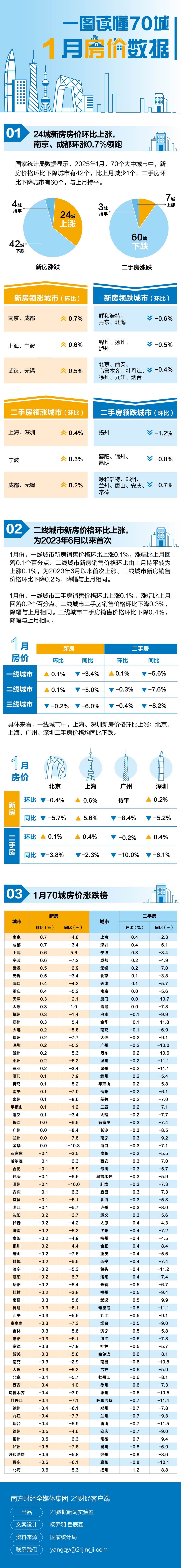 2月19日,国家统计局发布的2025年1月份70城房价数据显示: